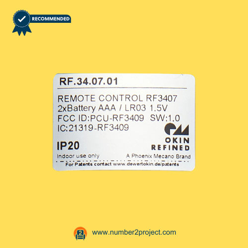 Genuine OKIN RF3407 wireless remote controller, full model number RF.34.07.01. Features 7 buttons, designed for adjustable bed bases with two motors.